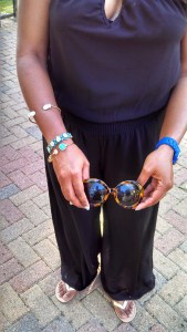 Hey loves! So today I am rocking this awesome jumpsuit that I scored at Dillard’s. It is strapless with a keyhole in the front and an oval shaped cutout in the back, which makes it super breezy! The material is really sheer and has built in shorts which makes it comfortable to wear during the summer months! I paired it with some simple gold sandals from Charlotte Russe. These beautiful earrings were a graduation gift from Dillard’s. I absolutely love these sunglasses! I call them my Bougie sunglasses. I always feel so fierce and fabulous with these! Put these with any outfit and INSTAGLAM!!! What’s your fave accessory in your closet? Feel free to comment below! XO and Stay FAB! – Stormie
