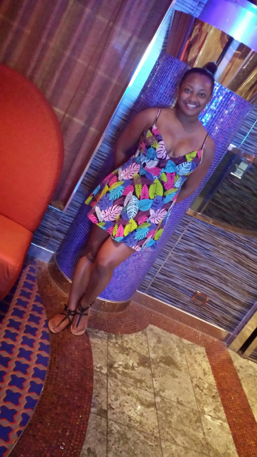 I opted for this feisty multicolored skater dress for a fun night of drinks and dancing. I kept my hair and makeup simple to allow my dress to be the focal point. This particular dress hugged my curves in all the right places hence the title Va Va Voom in Tropical!!! What do you guys think Yay or Nay? Make sure to stay tuned to hear more about my awesome cruise!