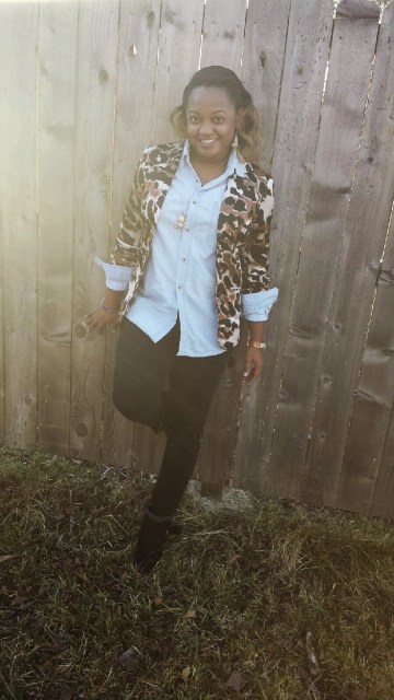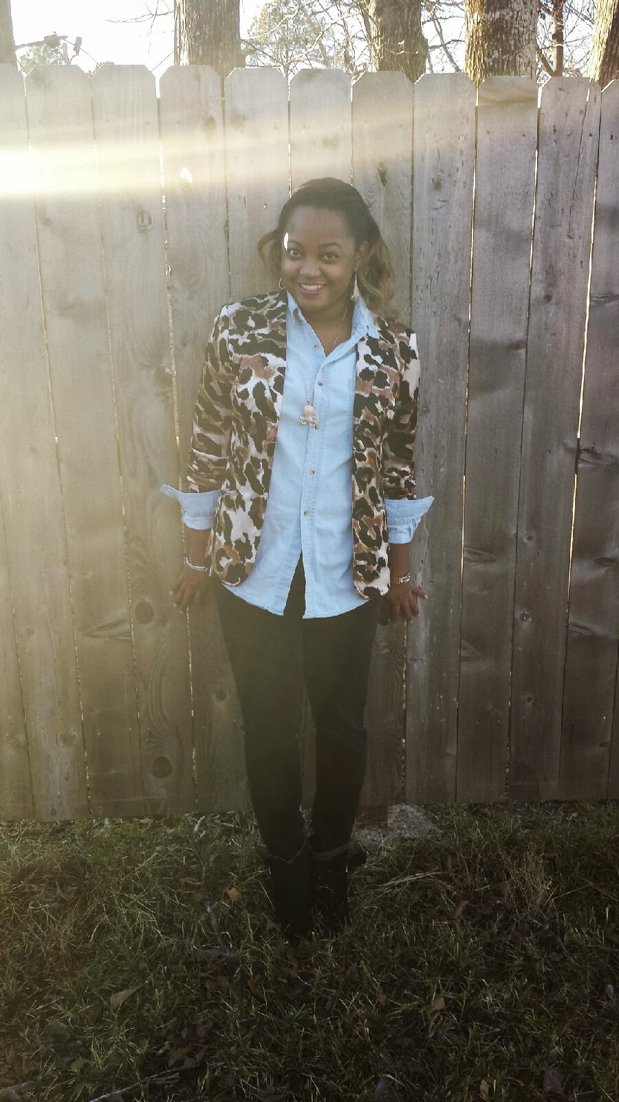 For this outfit I based the entire outfit around my fave blazer, leopard! I opted for skinny black jeans with this light wash jean shirt. Since the sleeves of my denim shirt are longer, I just cuffed them to my blazer. I finished the look with my suede black booties.