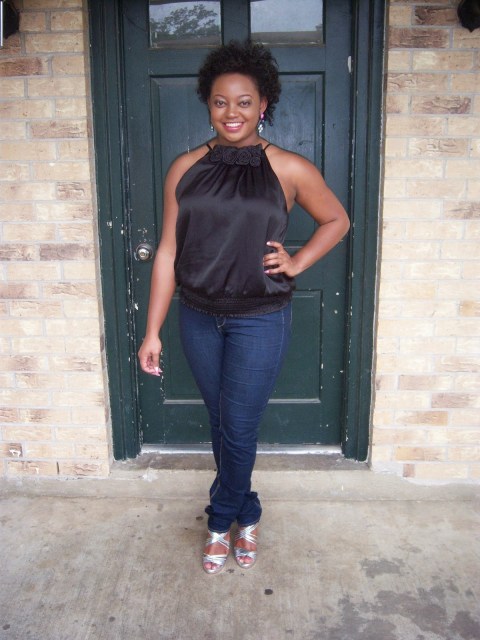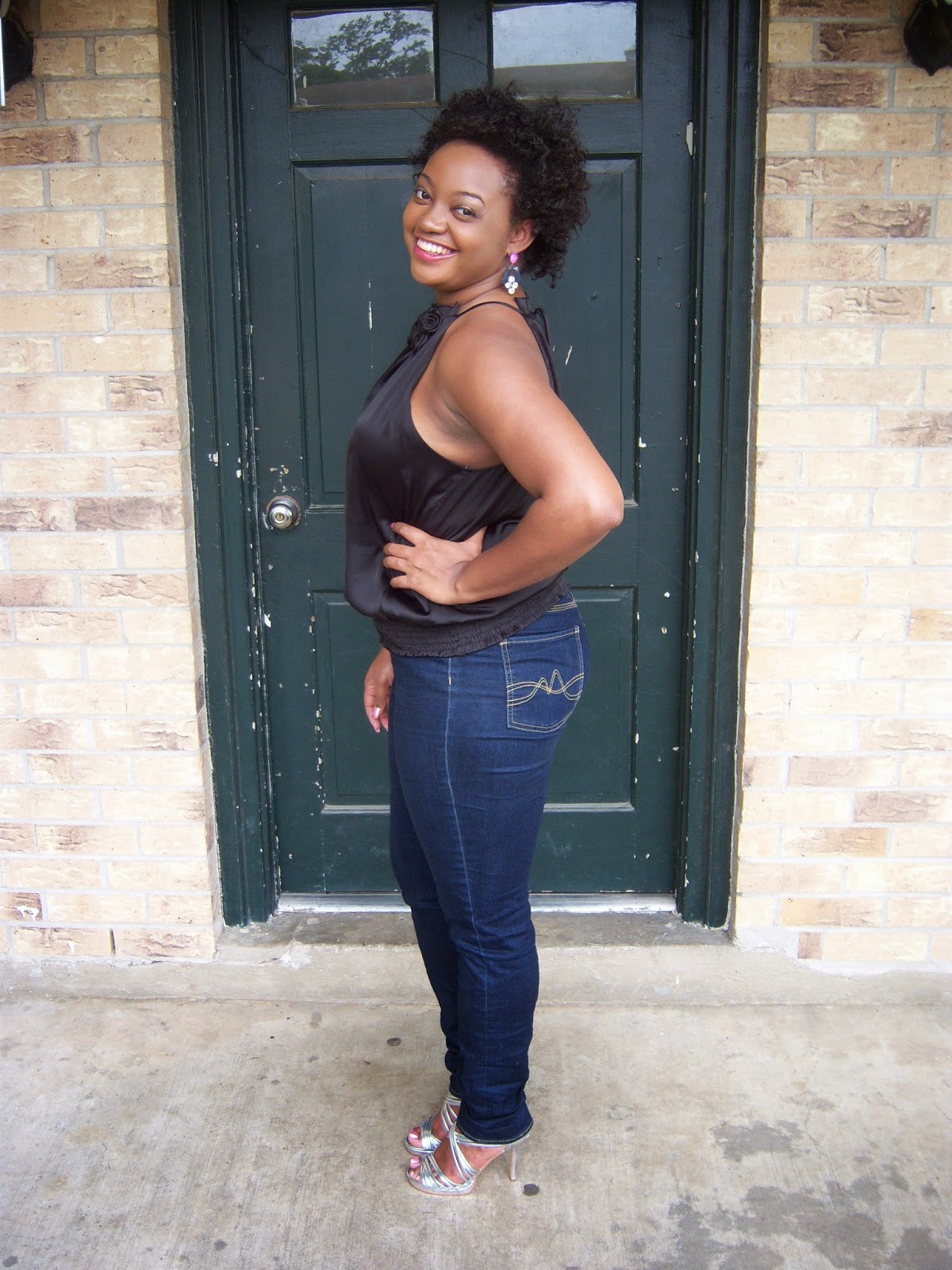 And yes as you can see, I am rocking my natural fro today! This outfit is perfect for a night at the movies, the comedy club or the bar. I absolutely love these fabulous statement earrings. So much you got to get a close up of these beauties!