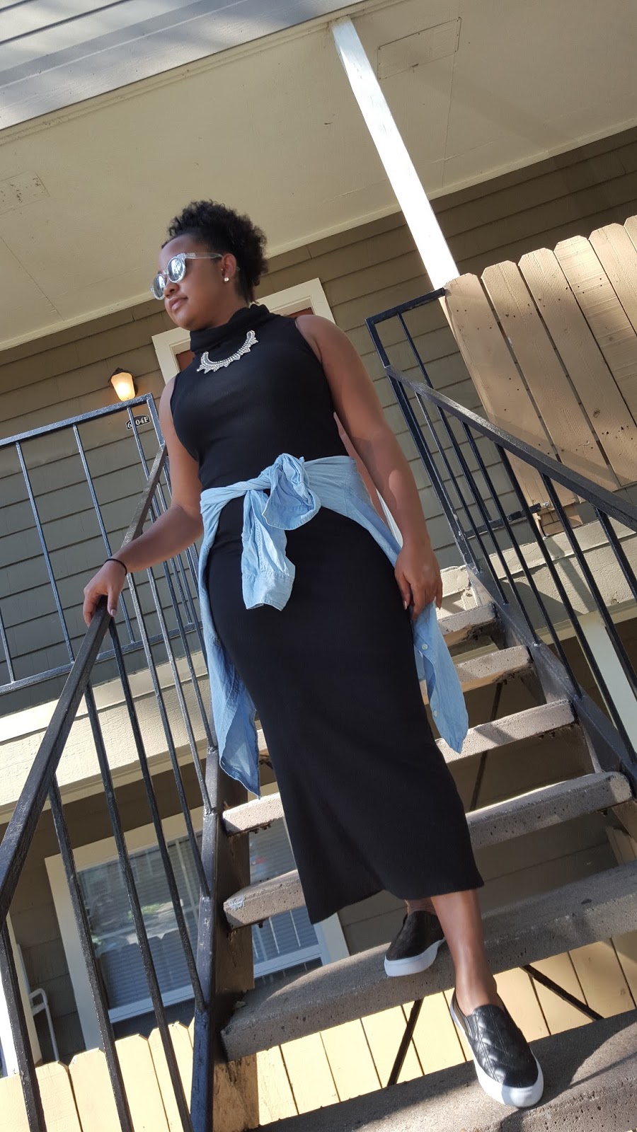 Hey Sweetie Pies! In today’s post I want to briefly gush about this midi dress! One thing I am dying to get my hands on are midi dresses in all colors, literally. This turtleneck added this certain sophistication and modesty to this otherwise sexy and flattering number. With that being said, this dress is super easy to dress up with some fierce heels and statement earrings but I wanted to create quite the contrast and dress this sexy dress down. I opted for these slip on sneakers which you guys know I love with a denim shirt tied around the day and great to throw on in while inside buildings. I still wanted the look to have an underlining glam factor to it so I opted for this fab statement necklace with my fave sunnies.