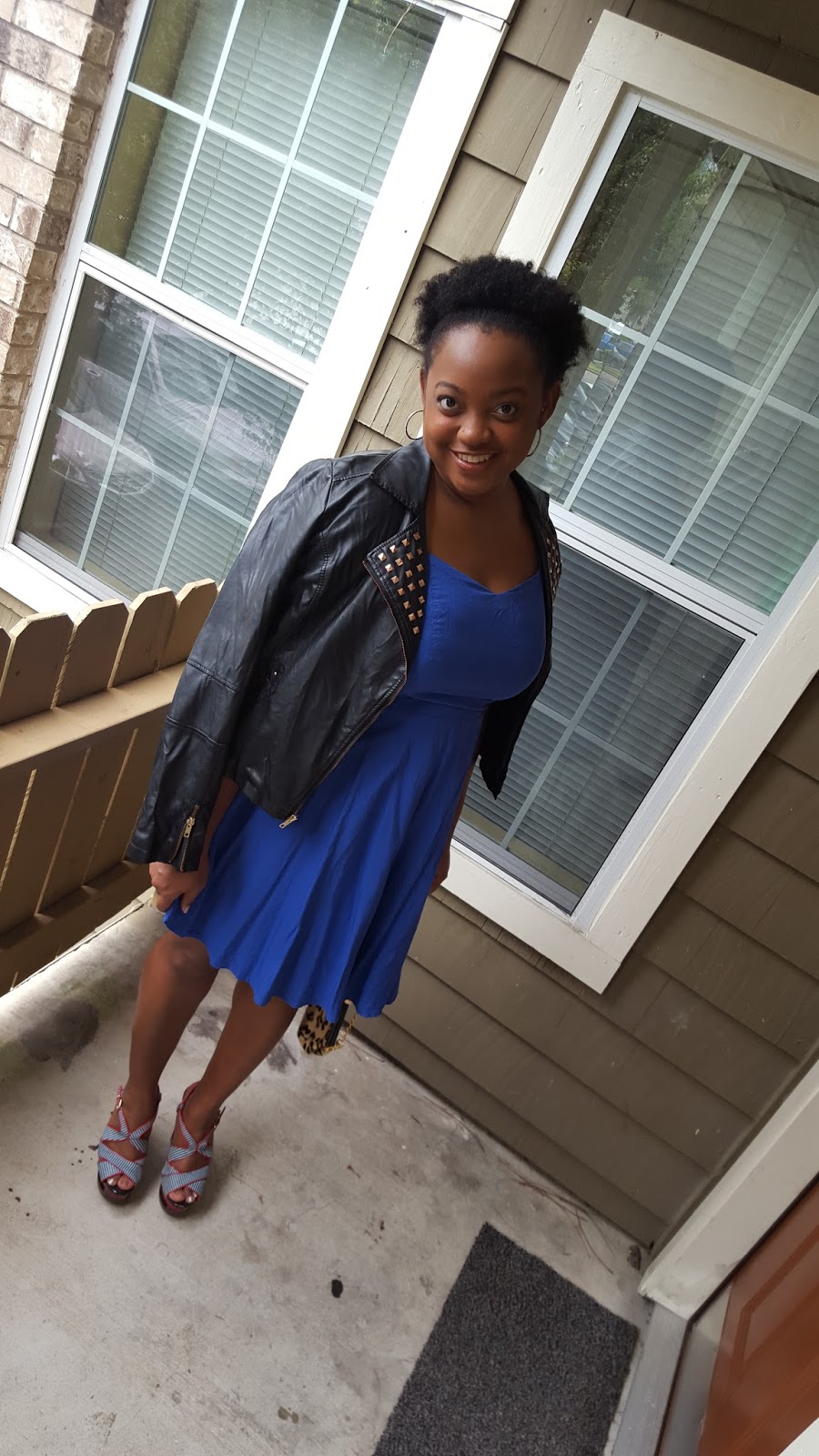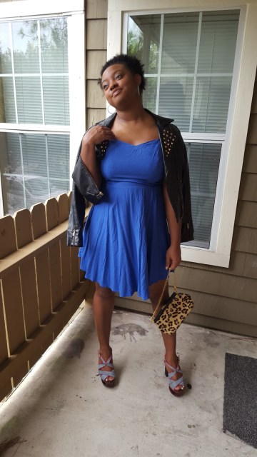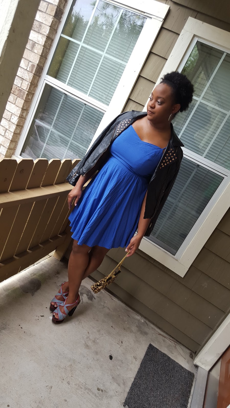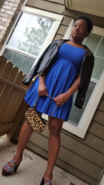Hey Sweetie Pies! In today’s post I wanted to share this look where I play with unusual pairing of textures such as leather and calf hair. I also experimented with different prints such as minimal stripes and leopard. Giving the previously mentioned complexities, I opted for a solid, simple flowy dress. I absolutely love this dress. You guys know I am a sucker for a nice fit and flare dress, which when paired with platform heels, is a Fall outfit staple.