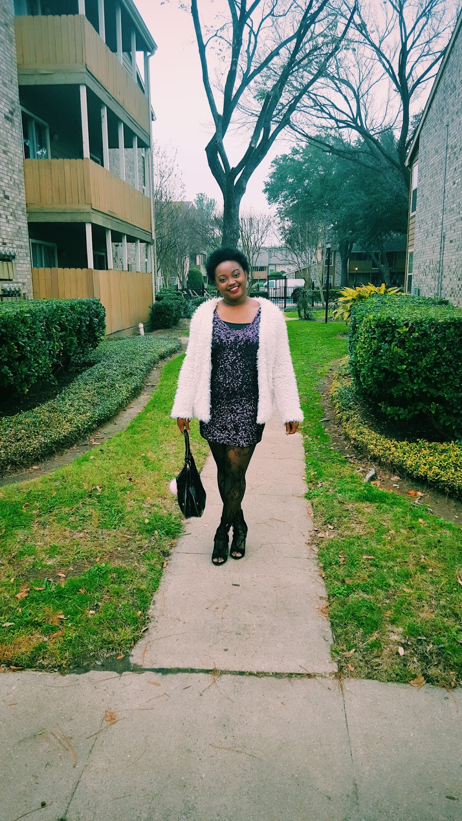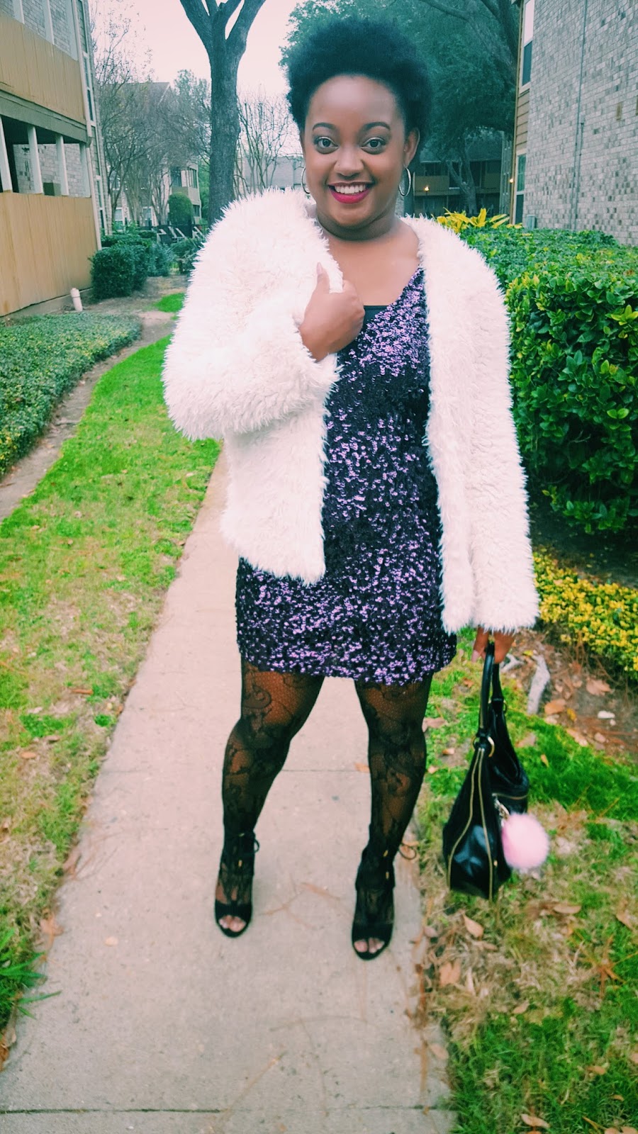 Me personally I have never been one to shy away from wearing anything sparkly, the holiday season just makes it the perfect excuse to. I wanted to go full on Glamazon with this look starting with this sequined number in a dark bold color. To add a touch of sexy, I opted for these lacy tights and strappy heels. To give it a glamorous luxe feel, I opted for this faux fur jacket that adds a nice contrast in comparison to the rest of the look.