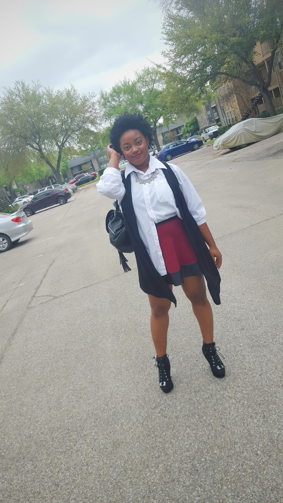Hey sweetie pies! My apologies for being MIA the past couple of days, at least when it comes to le blog. I have been swamped with work. But I am back and with a funky outfit that I LOVE! I created this look with my boyfriend’s old shirt, a flirty mini skirt, a long vest, some sexy booties and an ode to the 90s with the backpack purse.