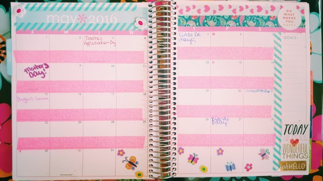 Hey sweetie pies! It is officially May! This year is flying by too fast, I can’t take it! A new month means new goals and new plans. And with new plans, comes a new monthly layout! I had a lot of fun creating this month’s layout. What inspired me most were the colors used in my Erin Condren planner for this month. The colors were a “Tiffany” inspired blue/green and pink. I love how every month has a color scheme.