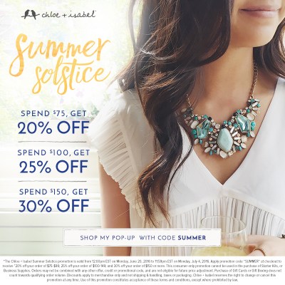 As if I need another reason for shopping. But I LOVE shopping all of the summer sales and adding to my wardrobe. One of which is the summer solstice sale that is now available in my boutique. Just click the Chloe + Isabel tab at the top of the home page.
