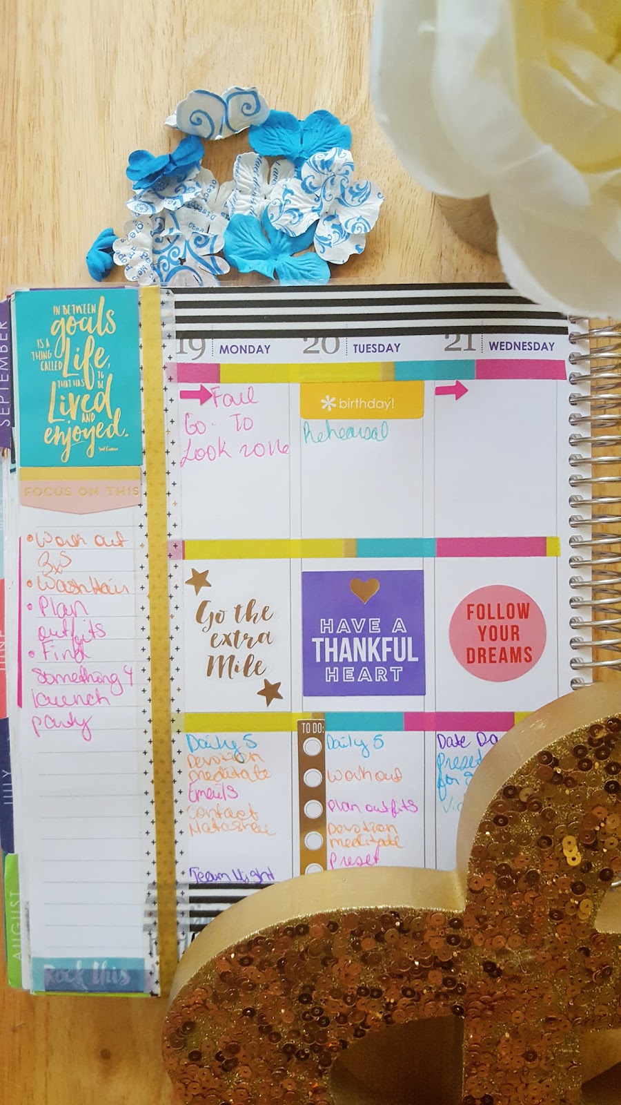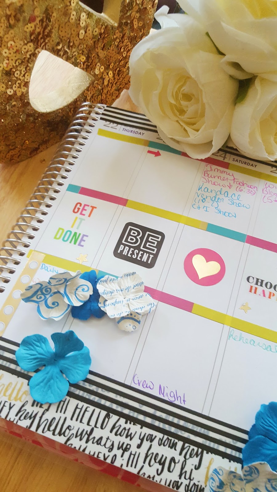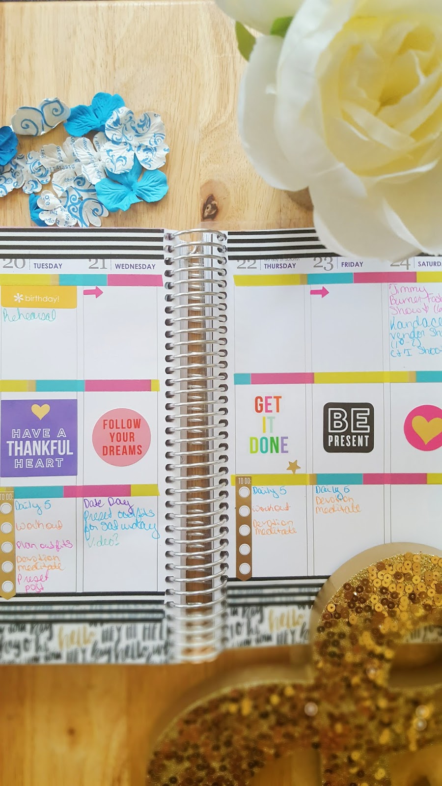 Hey sweetie pies! This week calls for meetings, rehearsals, photo shoots and more so of course your girl had to stay organized. I have a lot of things coming up next month as well so I am planning things for that as well. I wanted this layout to be vibrant and I am always down for some metallic touches! All of the washi tapes are from Hobby Lobby and the stickers are by MAMBI.