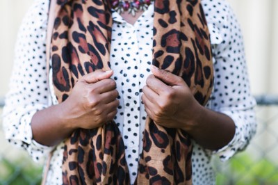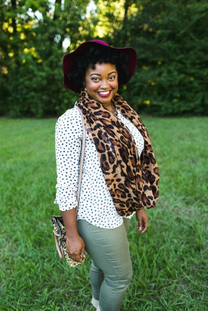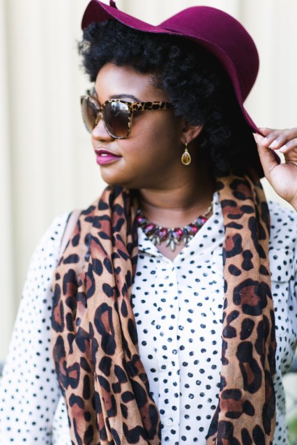In traditional ‘So Fabulously Sweet’ fashion, I had to take this look up another notch. I am sucker for mixing prints but I had to make sure that whatever print I use contain only neutral colors. This way it wouldn’t overwhelm my entire look. You know your girl loves some leopard so I grabbed this scarf and mini purse from +Charming Charlie and paired it with these minaret tiger eye petite drop earrings from my boutique. The mixing of the polka dots and the leopard print worked here because of the contrast created by the bold leopard and the minimal polka dot.