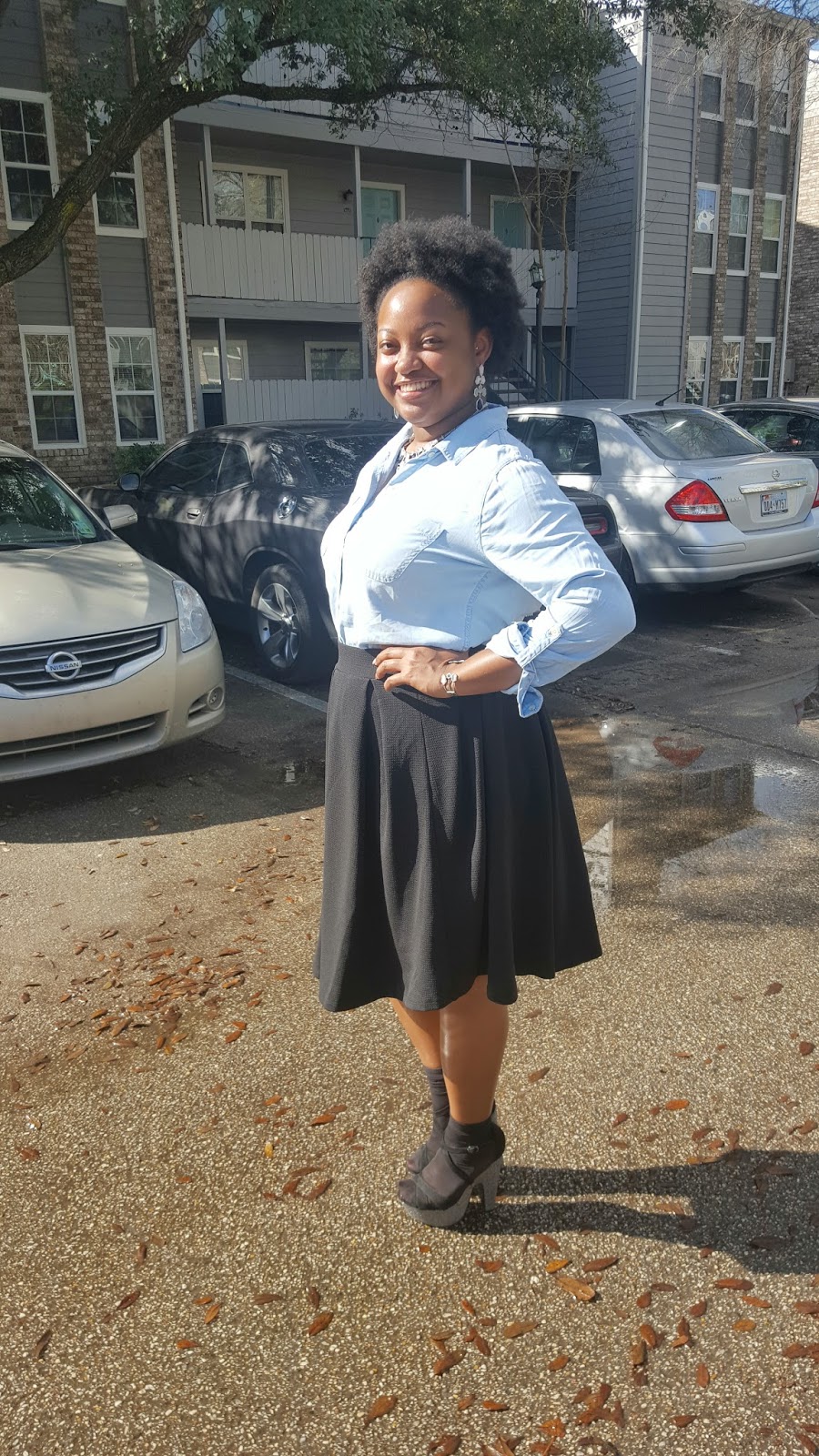 One trend that I have jumped on that I would have NEVER tried beforehand, socks with sandals. Now when it is done right, it can definitely be considered high fashion! I personally have been a fan of wearing fishnet or mesh socks because they look the best and you know that they will fit. I got these mesh socks from walmart and couldn’t wait to pair them with this skirt. I got this beauty at RainbowPLUS for less than $20! Chambray is still trendy enough for me so I opted for this number from Target. Paired it with some C+I Jewels and these sparkle platform heels and your girl was good to go!