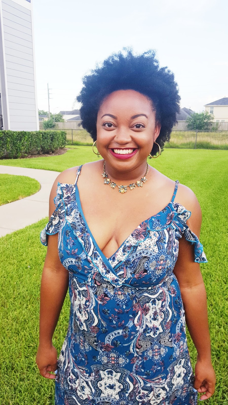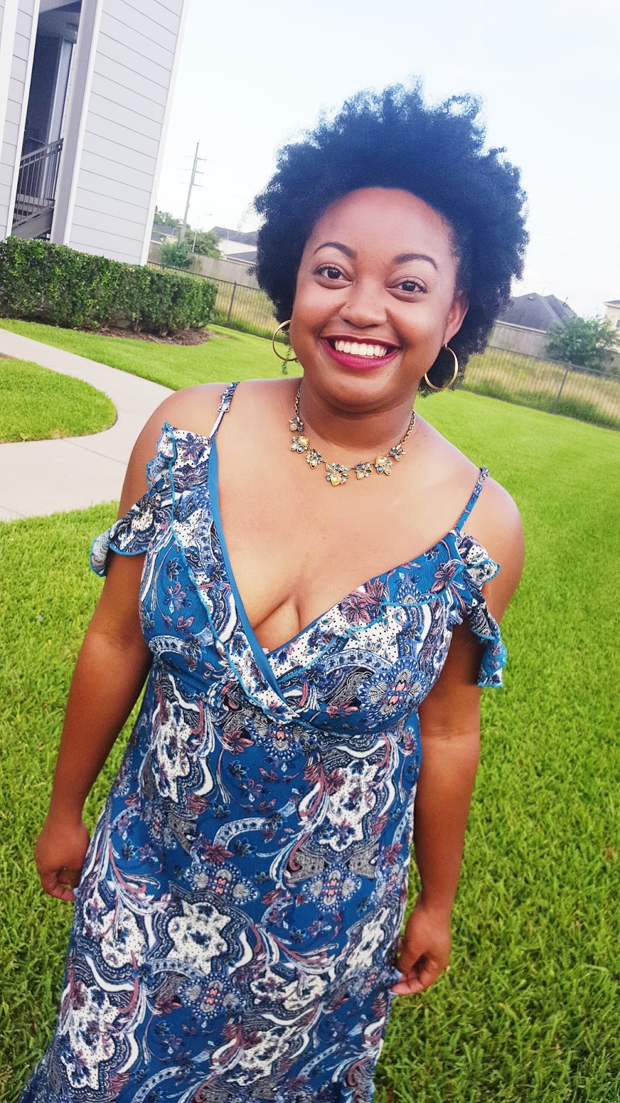 What do you sweetie pies think of this dress? I snagged it from Target and I am totally swooning over it! I am loving anything with ruffles this season – so fun and flirty! I love the ruffles over the bosom area with the cold shoulder detail, yes please! The print is unique and fun. I definitely appreciate the hem detail at the bottom. I think the only thing I would take away is the cut at the cleavage. I struggled to conceal my bra with this dress. Because of my size, I had to wear a bra but if you are smaller in the chest area you can definitely do without a bra.