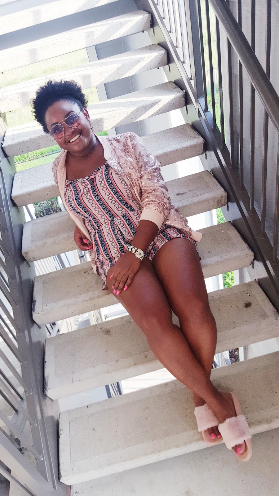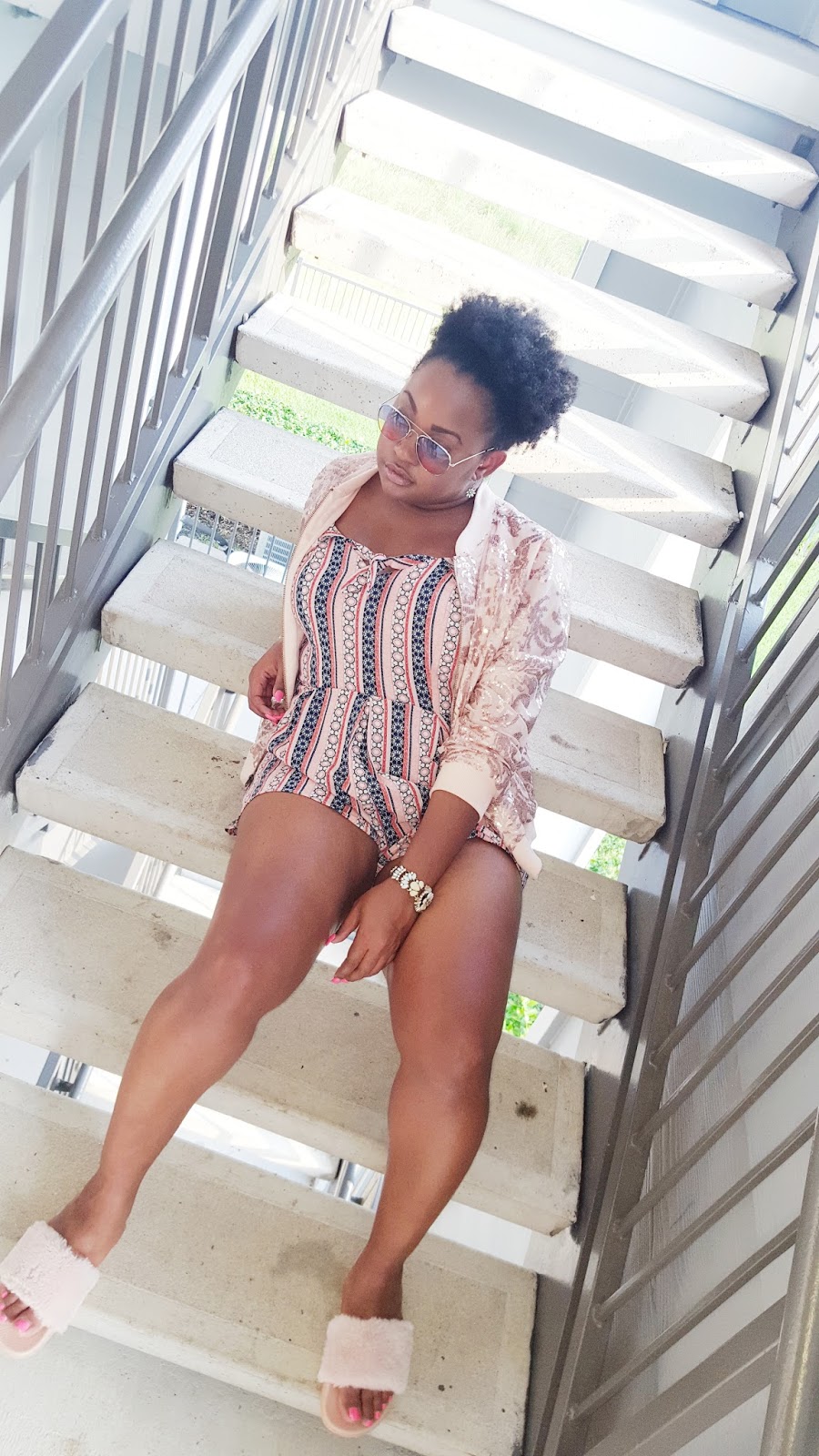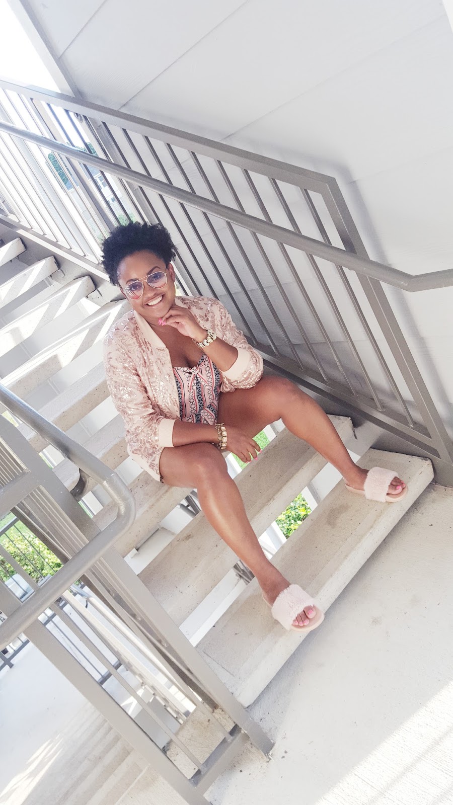 I opted for this light sequin bomber jacket with my faux fur slides. I got these dupes from Rainbow but they are offered at a plethora of stores. You more than likely already have a pair in your wardrobe. Jewels are from Chloe+Isabel and I grabbed these sunnies from a store called Q in the galleria. Colored tinted sunnies are super trendy right now and are being spotted every where. From celebrities to style stars alike these sunnies have definitely become a summer staple and the perfect accessory to compliment any outfit.