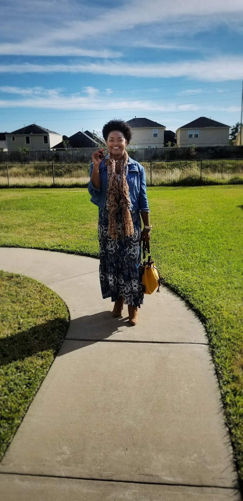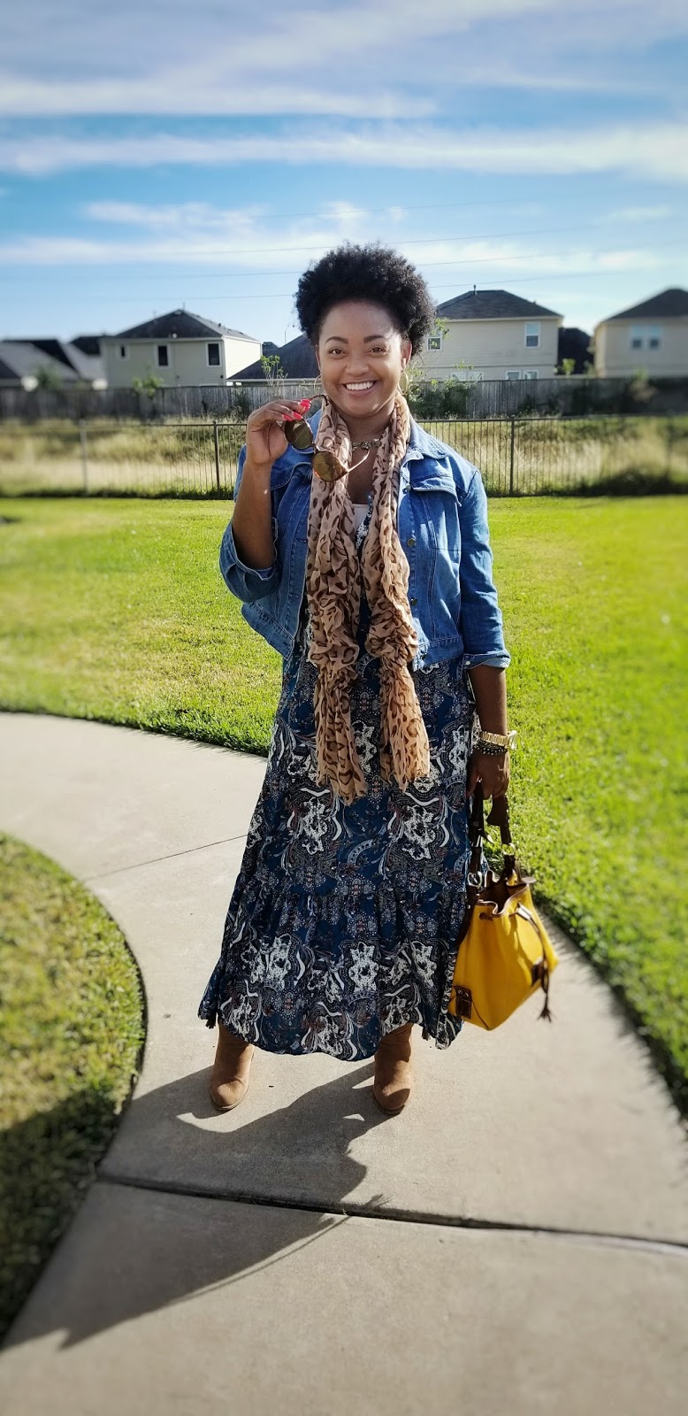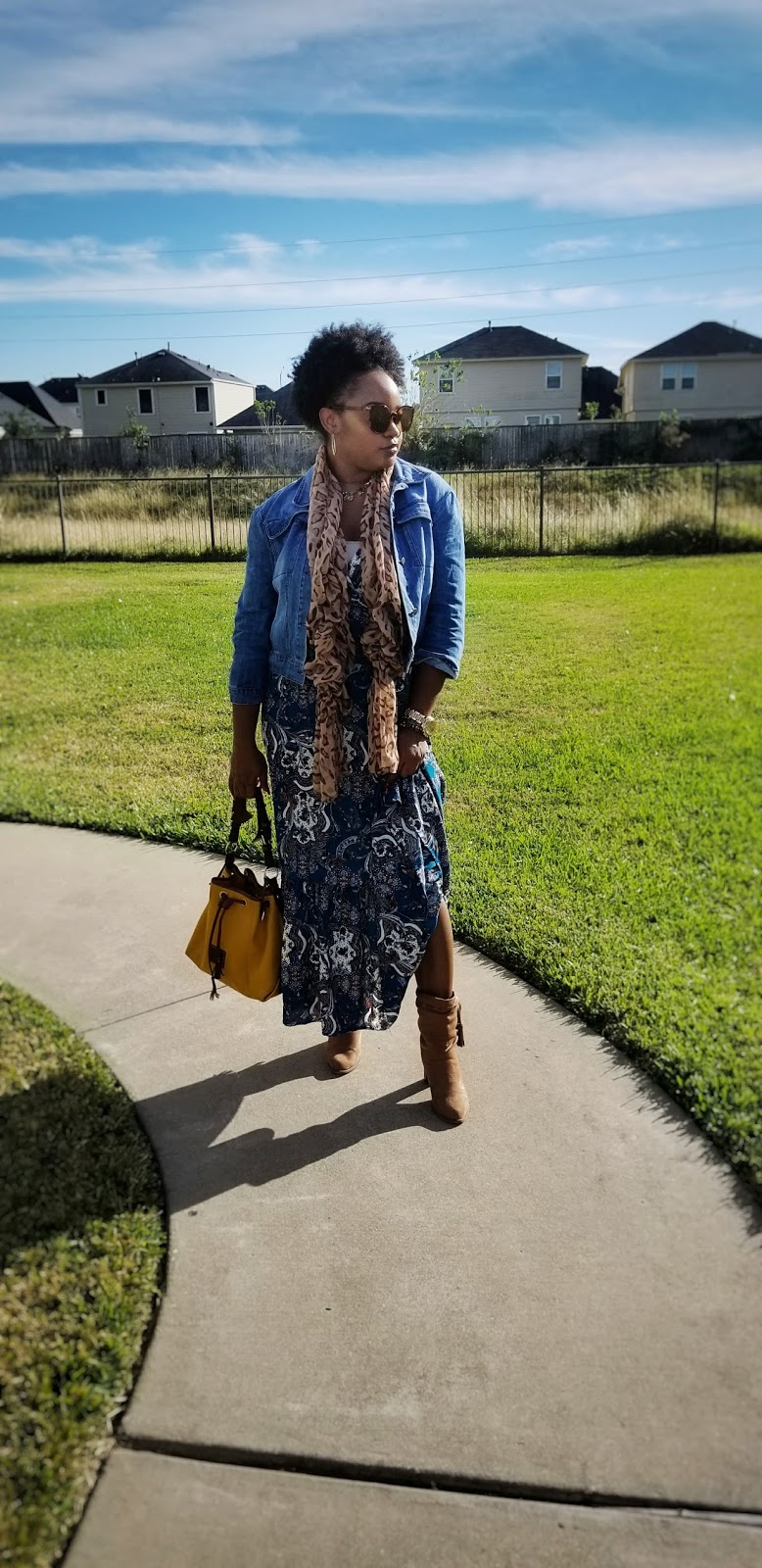 Hey sweetie pies! I hope this post finds you well! You ever see an outfit somewhere and say to yourself, “That outfit is cute but I don’t know how I can make it work?” – well that is this outfit for me. I never personally thought that I could pull off a maxi dress with booties, especially these almost western inspired booties but I was pleasantly surprised! To add my own little bit of flair to the look, I opted for prints. First with this printed maxi dress that I styled for warm weather on the blog here. Then I opted for these brown booties that are a faux suede material. To bring out the brown a little more, I opted for this leopard scarf that I have had for ages. To my surprise the prints didn’t clash, I believe it is because one is a small print and one is a big print. To complete the look, I threw on my tried and true denim jacket. If it is cooler where you are, opt for a moto jacket. I hope this post inspires you to try a look that you wouldn’t otherwise. You may be pleasantly surprised! If you do, I encourage you to share on social media and tag me at @sofabulouslysweet. What do you sweetie pies think of this look? Chime in the comments below!