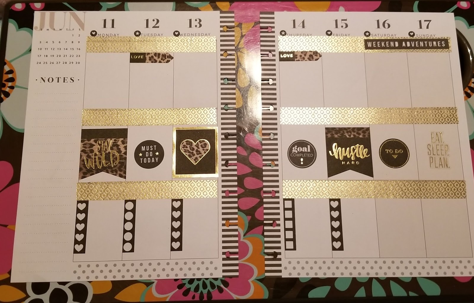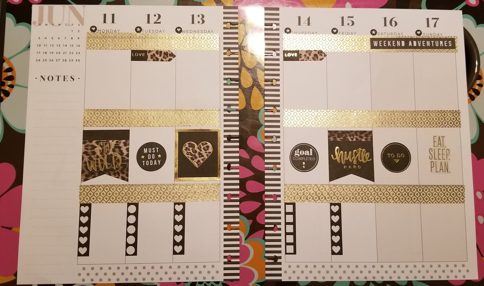 Hey hey sweetie pies! I hope you guys have been well! If you follow me on Insta or Facebook, then you would know that I have been sick lately. It got really bad over the weekend but I am getting better day by day. 🙂 It has been a minute since I shared a planner layout and I am totally digging this week’s layout. I have been loving these leopard stickers from a sticker book by the Paper Studio. Gold foil is one of my weaknesses when it comes to planning – it just looks so pretty! The leopard inspired this week’s layout and I kind of just ran with it. It turned out so pretty so I decided to snap some pics! Of course, this is before the pen so that you could really enjoy the layout. If you have any planner pics share them on social media and tag me @sofabulouslysweet! I would love to see!