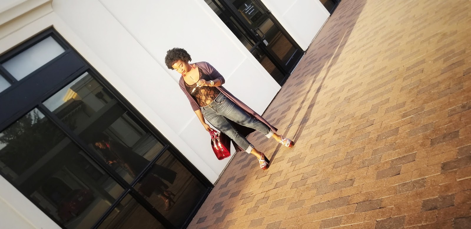 I opted for a casual glam look with a hint of sexy. I have worn this lace bodysuit to perform in a couple of times but I’ve never been bold enough to wear it in public. I am so glad that I did! I felt so fabulous, eeeeoooowwww! This long cardigan is super comfy! It’s not too thin, not too thick and has a nice fit. Of course, I am back with the cat eye sunnies! They just go so well with everything!