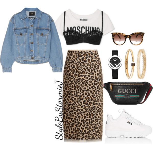 Chunky sneakers are not just for working out anymore! This style of sneaker is being seen worn with everything from jeans to dresses. Leopard skirts in particular are having a moment so I started with that and then added this sneaker. I love the contrast of the feminine and sporty. Next this Moschino crop top is definitely going to turn heads with this lace bra layered over. To pull it all together, an oversized denim jacket is perfect. For the accessories, opt for minimal accessories that don’t compete with the outfit. Whether you call them belt bags, fanny packs or something else, these bags are definitely trending. You can invest in this trend regardless of your budget. These bags are becoming available in designer as well as fast fashion.