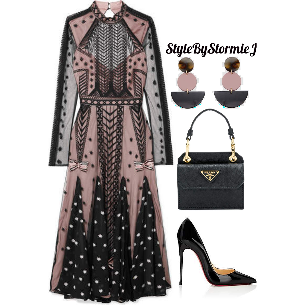 For this last look, I started with this gorgeous dress! I love all of the details from the lace to the prints to the bows. This dress is perfect for any occasion. Allowing the dress to be the focal point, I opted for a pair of simple pumps with a structured mini handbag. Lastly a pair of statement earrings to just a subtle touch and bring out the colors in the dress.