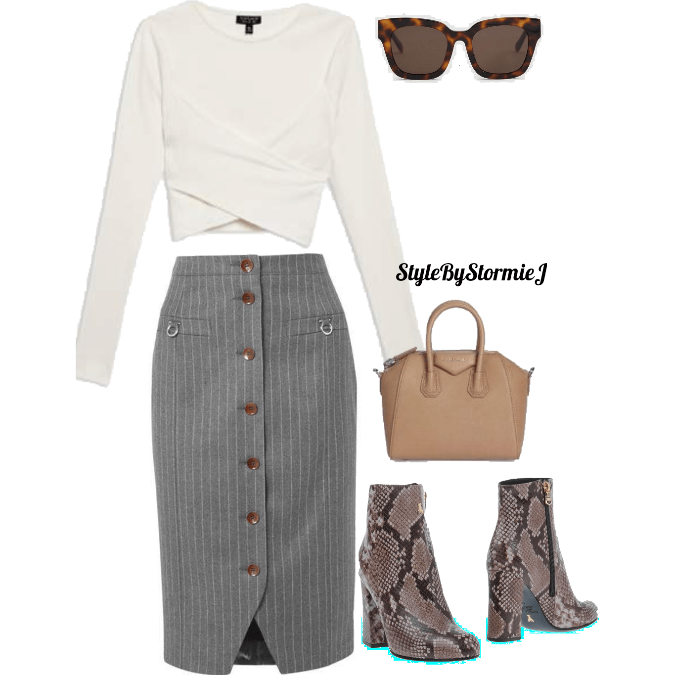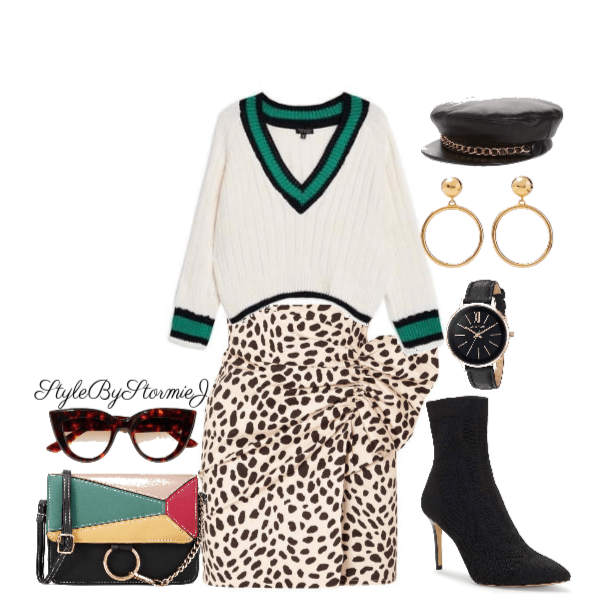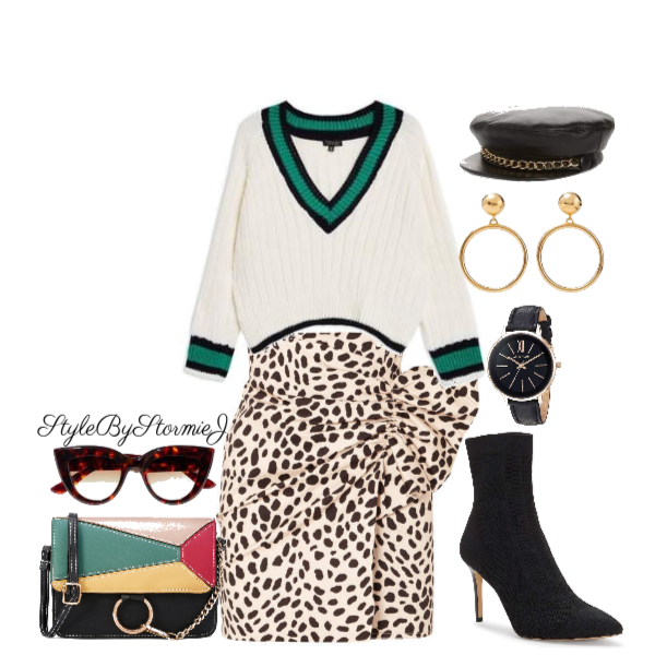 I call this look “Librarian chic”. This skirt gives me more of a mature vibe so I paired the skirt with this sexy cropped wrap sweater. A simple oversized handbag in a neural color compliments the look instead of taking away from it. Animal print is trending in a major way but if you’re still on a fence, try it with an accessory. These animal print booties are the perfect ending for this look. Would you rock it?