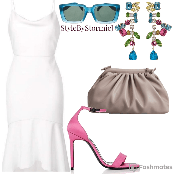 Stand out at the next all white party with this gorgeous slip dress. All white doesn’t have to be simple. A nude clutch compliments the dress nicely. Colorful accessories to help you to stand out in the crowd.