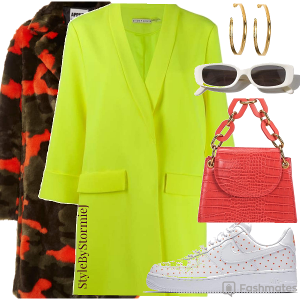 Colorblocking neon in particular has been seen on the runway and all over Instagram. Between thrifting fashionistas and designer divas, color blocking with bold neons is the wave. I started with the neon yellow dress, pairing it with the Flamez bag. I opted for this camo