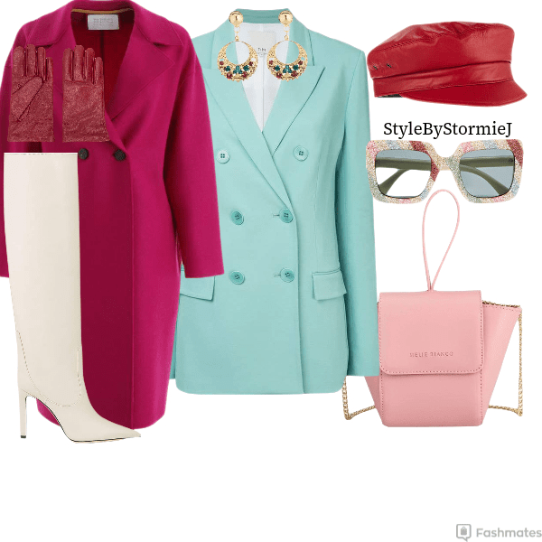 This one is a given but I definitely needed to create a look. I love these tall white boots for the winter. I paired them with this pastel blazer dress. Normally pastels are reserved for the Spring but why not do something different?! These sunnies are super chic and playful. I pulled colors from these to create this look. A berry-colored coat with fuchsia gloves, the Elle Wristlet in pink, and a red hat is a major color-blocking moment. Lastly, these earrings add a little sparkle. This look is perfect for all the color lovers out there.