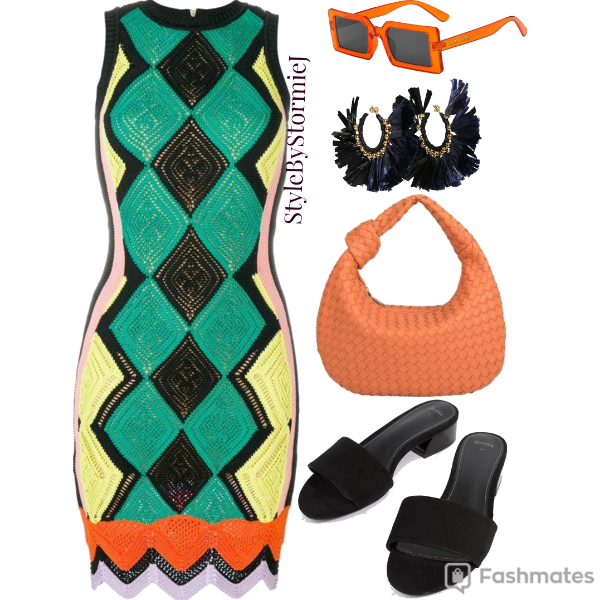 When it comes to summer style, crochet is simply a no-brainer. Crochet is not only comfortable but breathable in this crazy heat. This dress immediately caught my eye. From the colors to the design to the hem – this dress is everything. A pair of low mules to keep this look casual. These raffia hoop earrings are stunning and pair perfectly with the mules. From the boutique, the Drew handbag and the Berlin sunglasses complete the look.