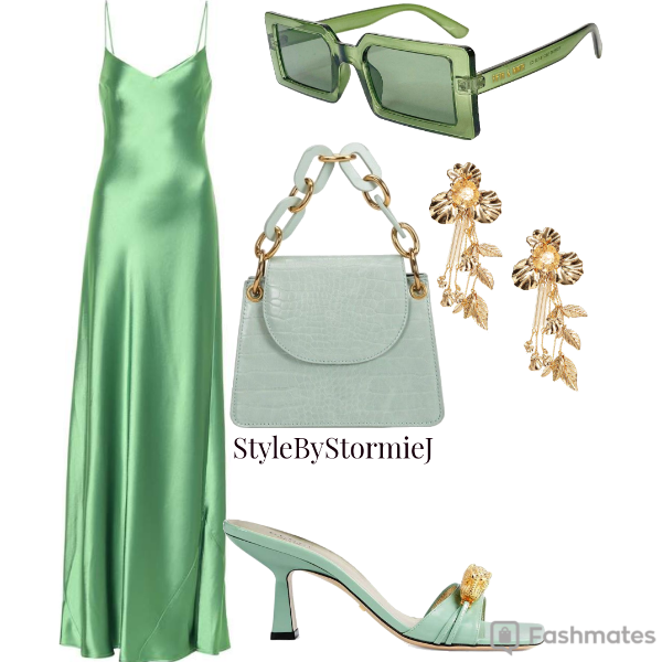 So minty, so clean clean! A monochromatic mint green outfit is soooo darling for the season. If you are a Pastels, pink princess kind of vibe, this outfit is a great alternative. Take a break from the pinks with a midi slip dress, paired with the Mint Condition handbag and the mint mules. The Berlin sunglasses in the color green apple are a fabulous choice. Lastly, a pair of floral gold dangle earrings complete this soft, feminine look.